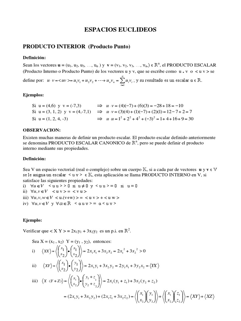 Un espacio vectorial Real con producto Interior se llama ESPACIO VECTORIAL EUCLIDEO ( o