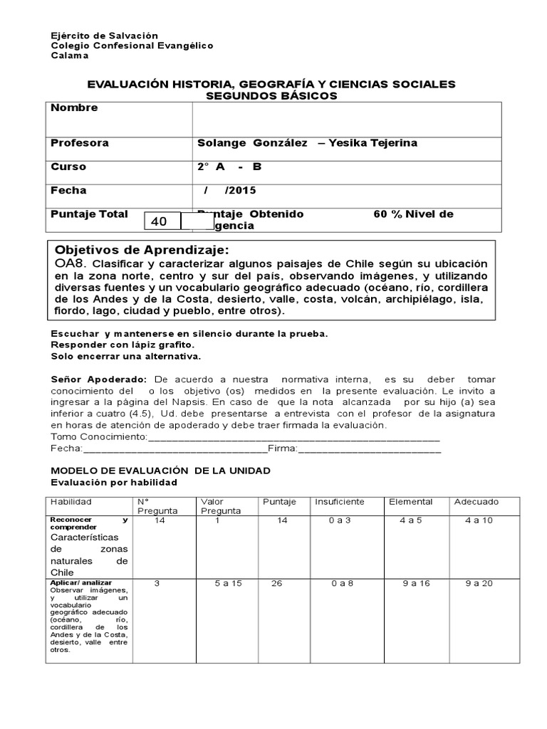 EVALUACIN HISTORIA, GEOGRAFA Y CIENCIAS SOCIALES