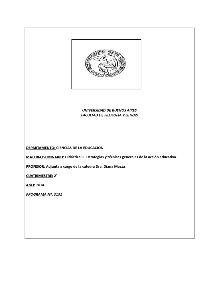 MATERIA/SEMINARIO: Didctica II. Estrategias y tcnicas generales de la accin educativa.