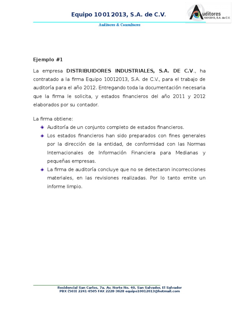 Informe de Auditor Independiente.