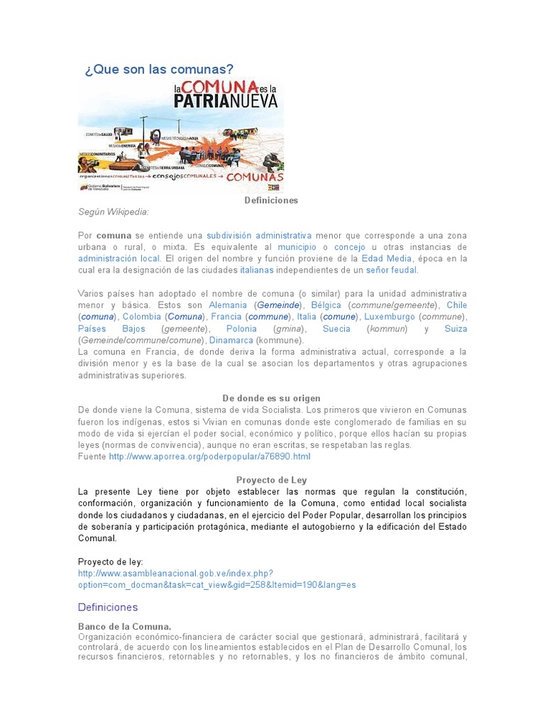Comuna en Parlamento Comunal, con el propsito de regular la vida social y comunitaria,
