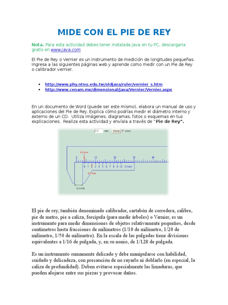 Ingresa a las siguientes pginas web y aprende como medir con un Pie de Rey