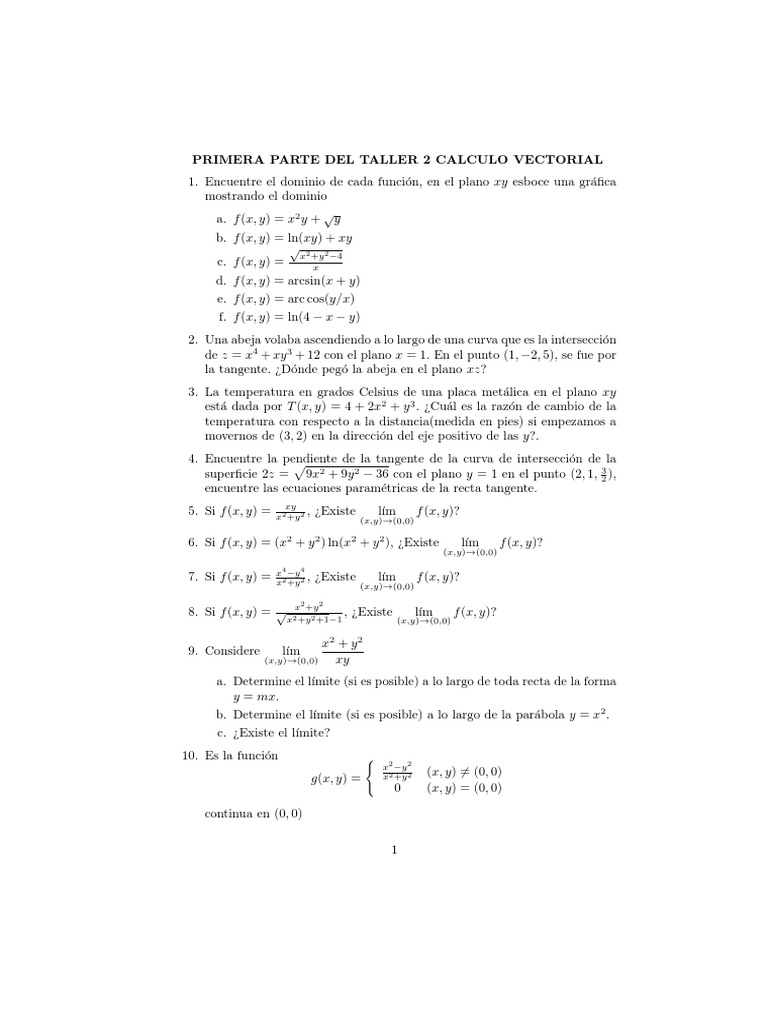 SEGUNDA PARTE DEL TALLER 2 CALCULO VECTORIAL