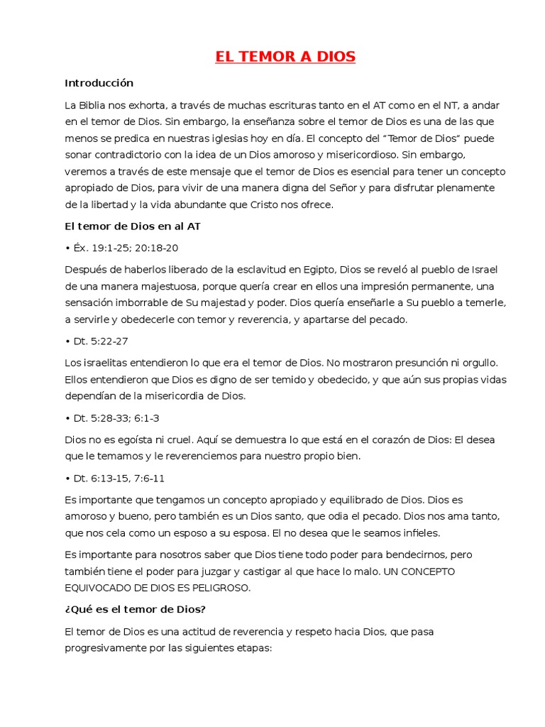 veremos a travs de este mensaje que el temor de Dios es esencial para tener un concepto