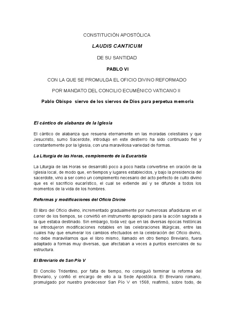 CON LA QUE SE PROMULGA EL OFICIO DIVINO REFORMADO