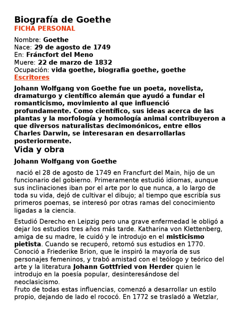 Johann Wolfgang von Goethe fue un poeta, novelista,