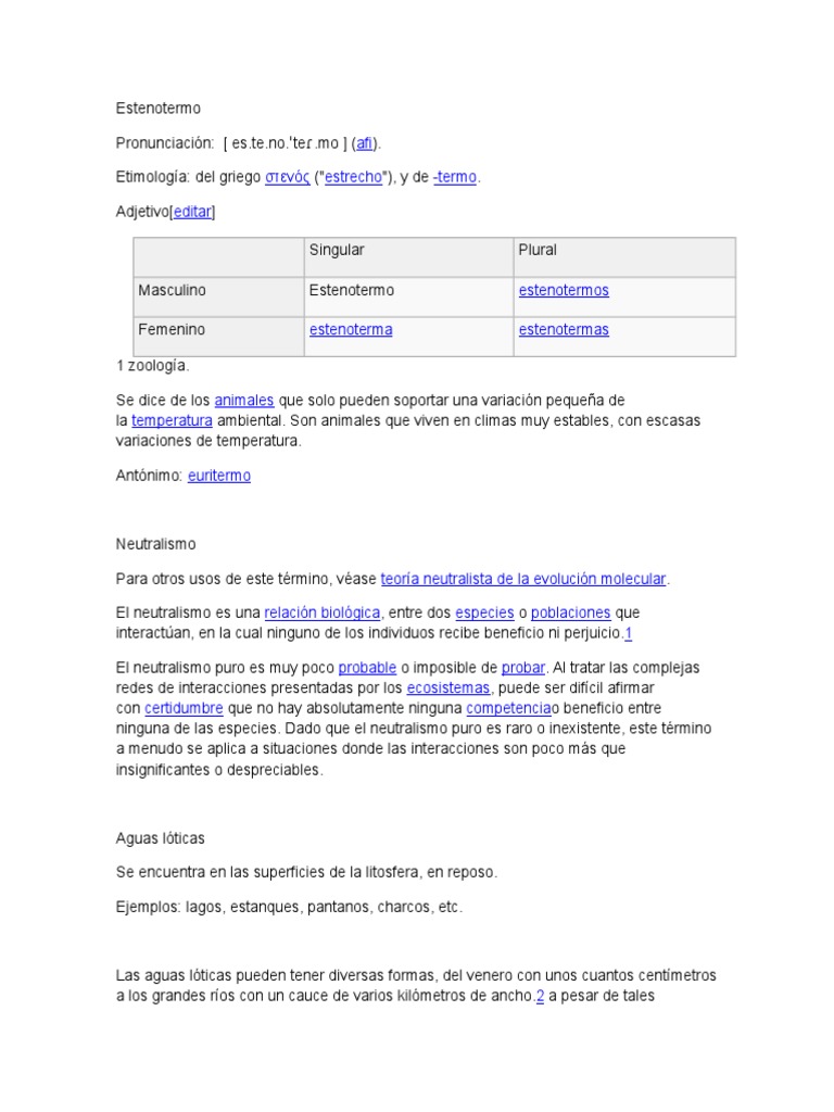 Se dice de los animales que solo pueden soportar una variacin pequea de