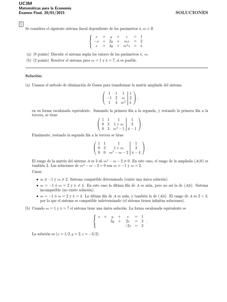 (b) (2 points) Resolver el sistema para m = 1 y k = 7, si es posible.