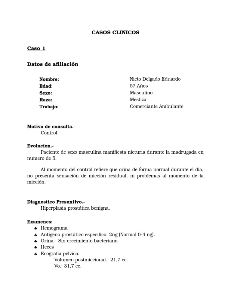Evolucion.Paciente de sexo masculina manifiesta nicturia durante la madrugada en