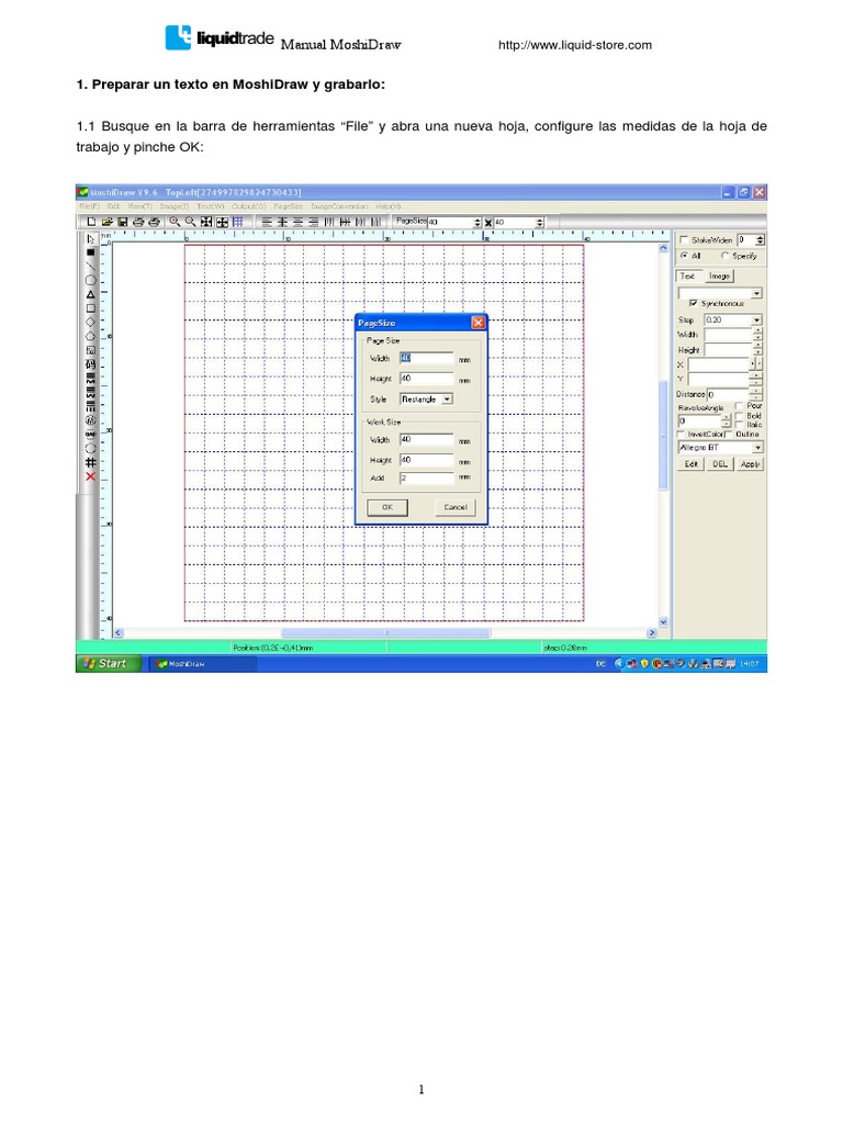 1.1 Busque en la barra de herramientas File y abra una nueva hoja, configure las medidas de la hoja de