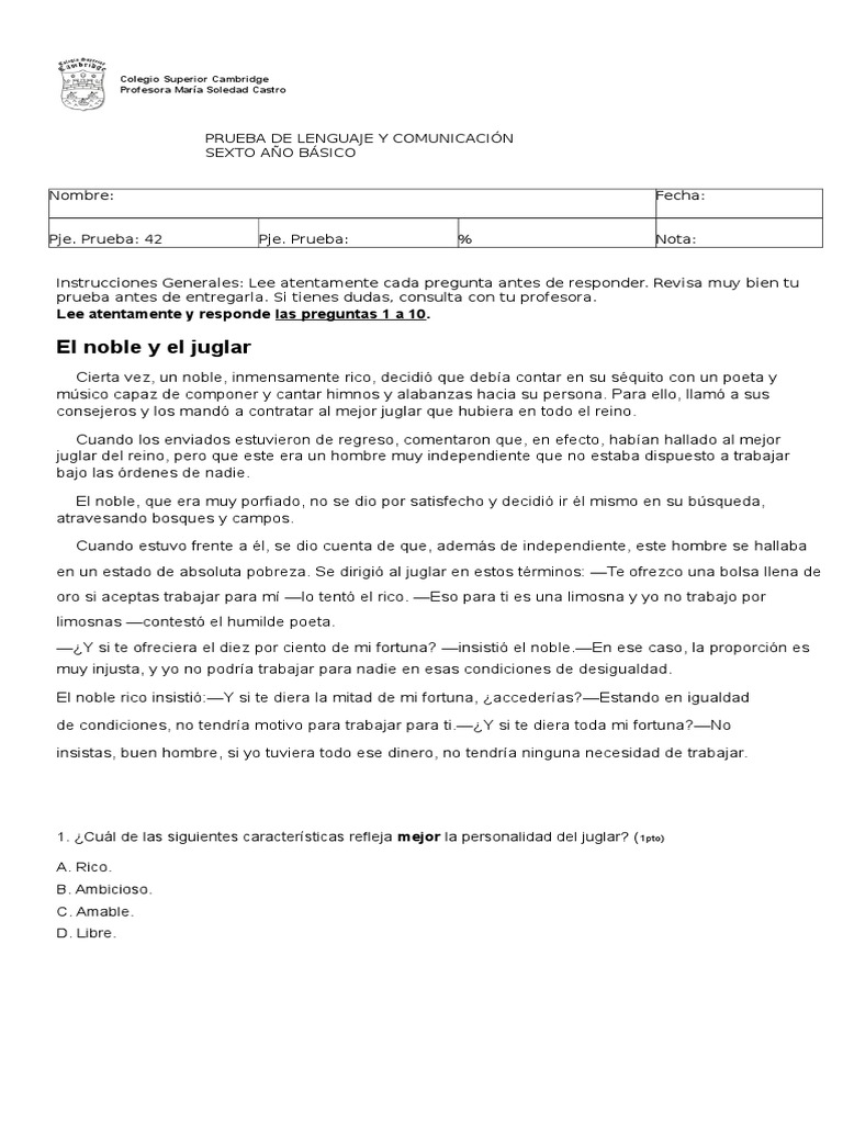 2. Para qu el noble buscaba al mejor juglar del reino? ( 1 pto) Para que: