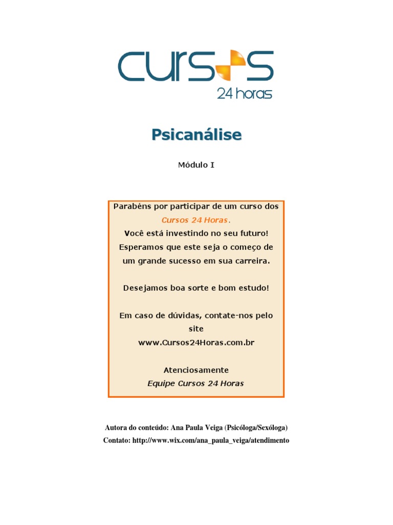 Psicanlise, oferecido pelos Cursos 24 Horas.