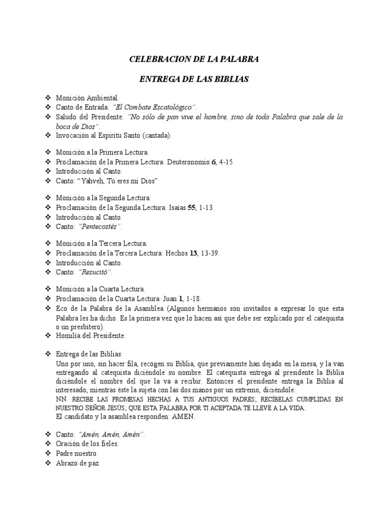 HOMILIA PARA LA ENTREGA DE BIBLIAS