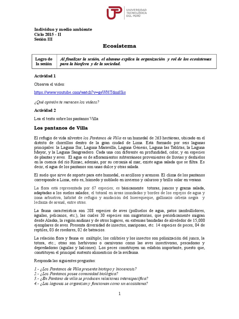 1.- Los Pantanos de Villa presenta biotopo y biocenosis?