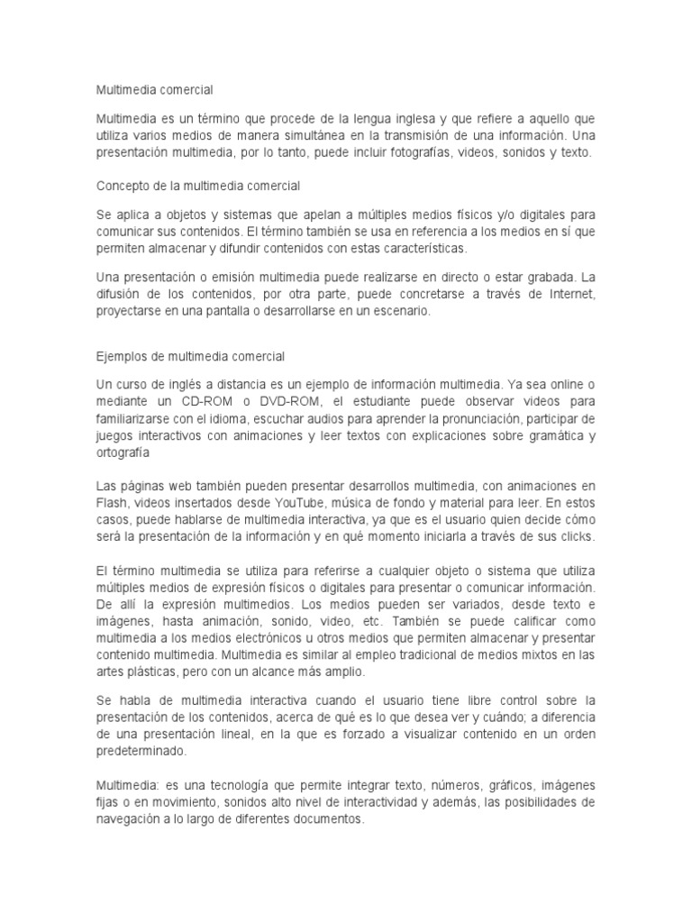 Ejemplos de multimedia comercial