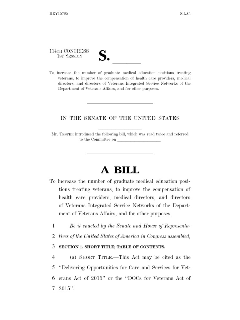 erans Act of 2015’’ or the ‘‘DOCs for Veterans Act of