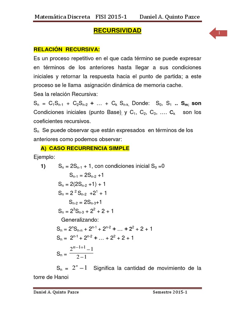 1) Sn = 2Sn-1 + 1, con condiciones inicial S0 =0