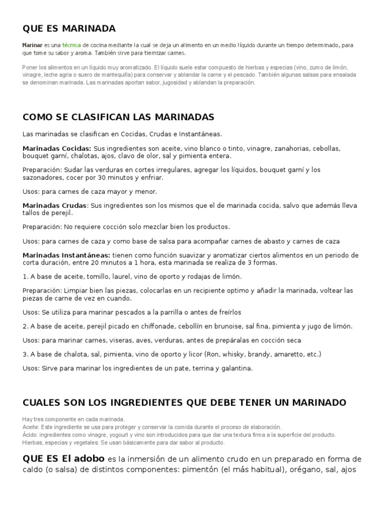 CUALES SON LOS INGREDIENTES QUE DEBE TENER UN MARINADO