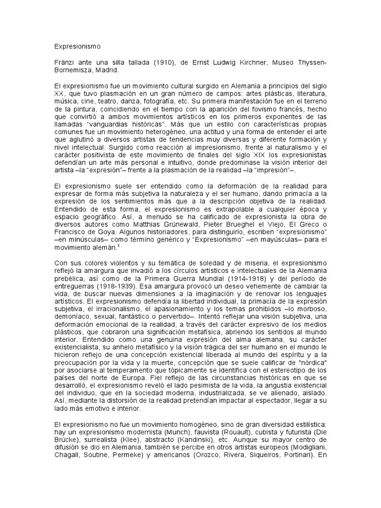 El expresionismo fue un movimiento cultural surgido en Alemania a principios del siglo
