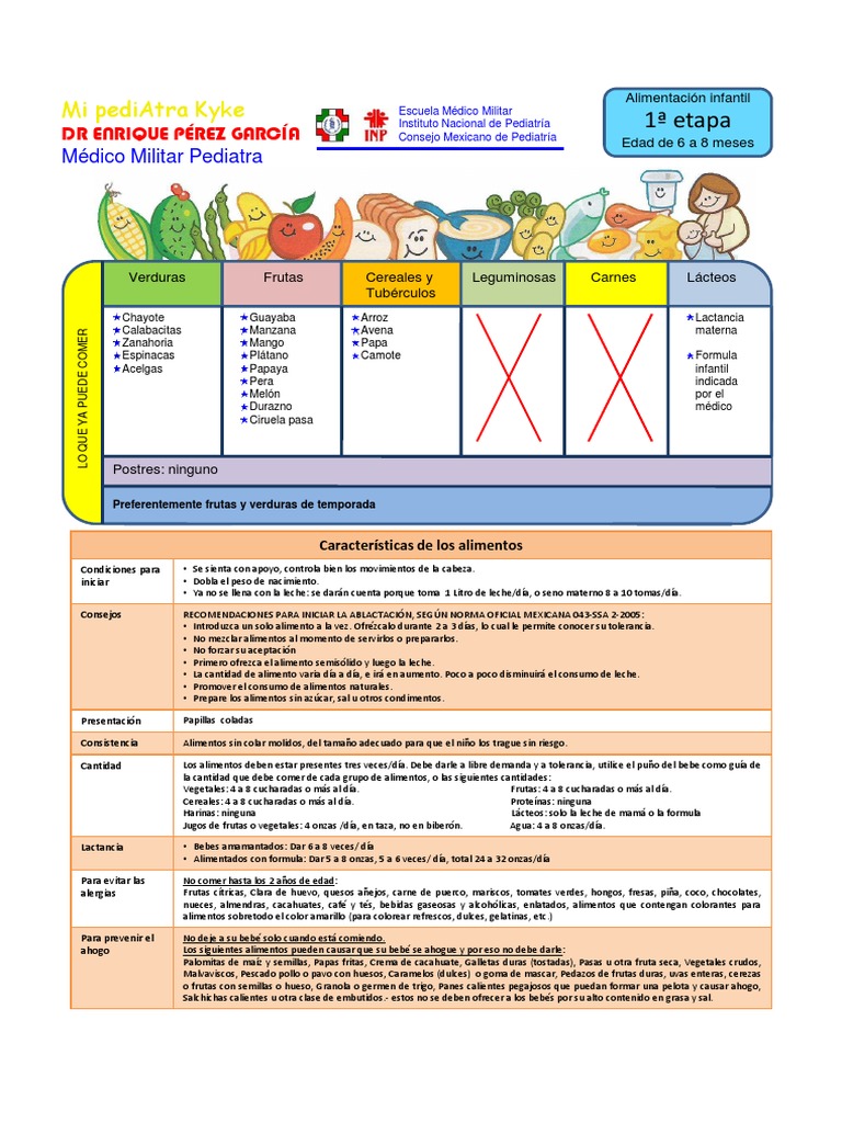 RECOMENDACIONES PARA INICIAR LA ABLACTACIN, SEGN NORMA OFICIAL MEXICANA 043-SSA 2-2005: