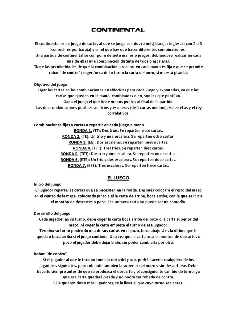 El continental es un juego de cartas al que se juega con dos (o ms) barajas inglesas (con 2 o 3