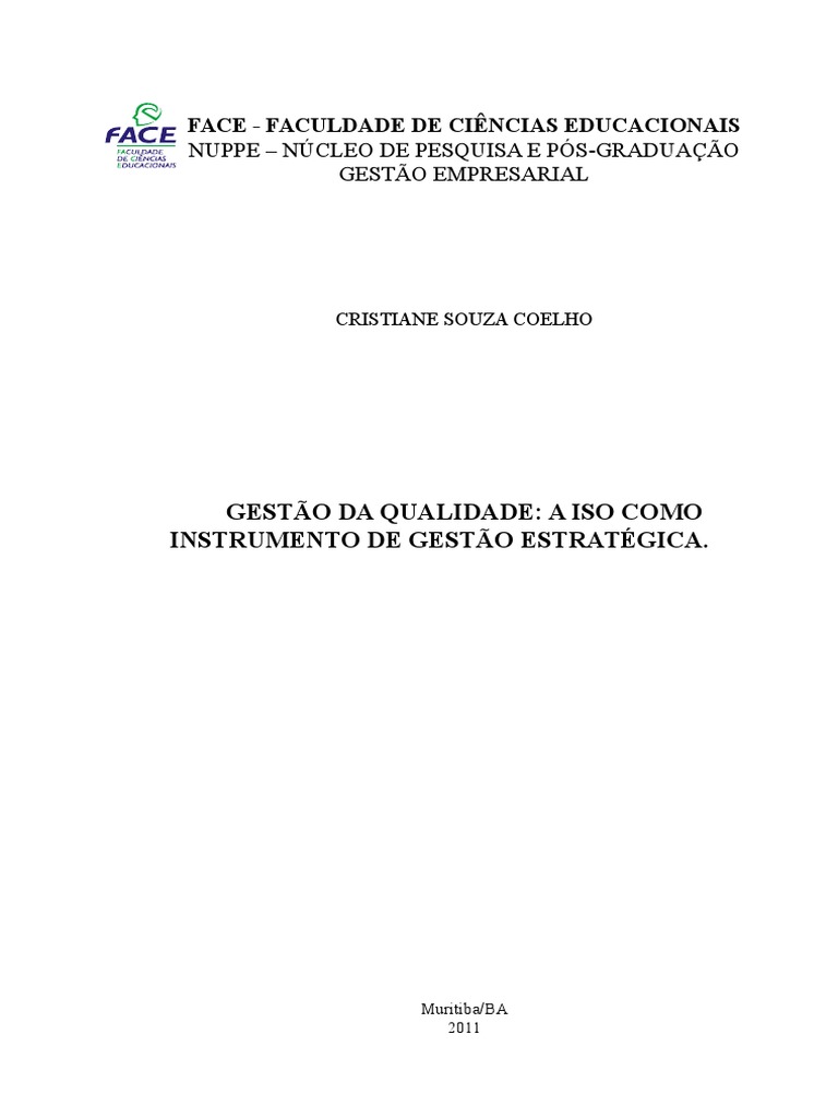 GESTO DA QUALIDADE A ISO COMO PROPOSTA DE GESTO ESTRATGICA