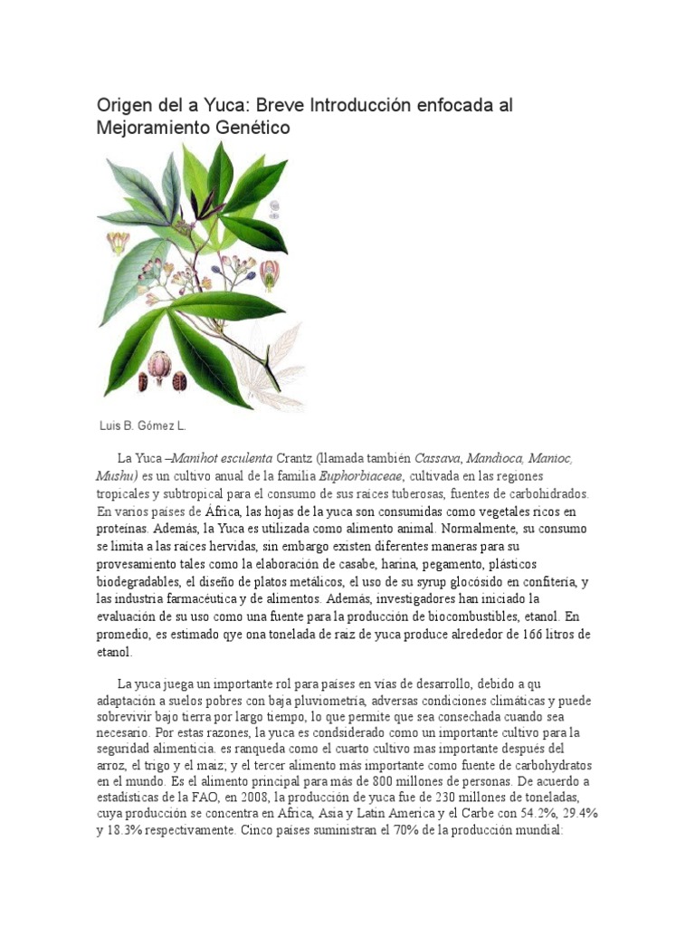 La Yuca Manihot esculenta Crantz (llamada tambin Cassava, Mandioca, Manioc,