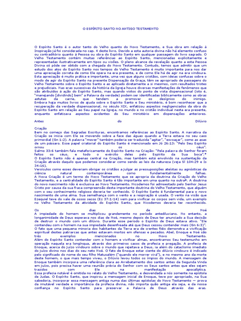 Velho Testamento contm muitas referncias ao Esprito Santo, mencionadas explicitamente e