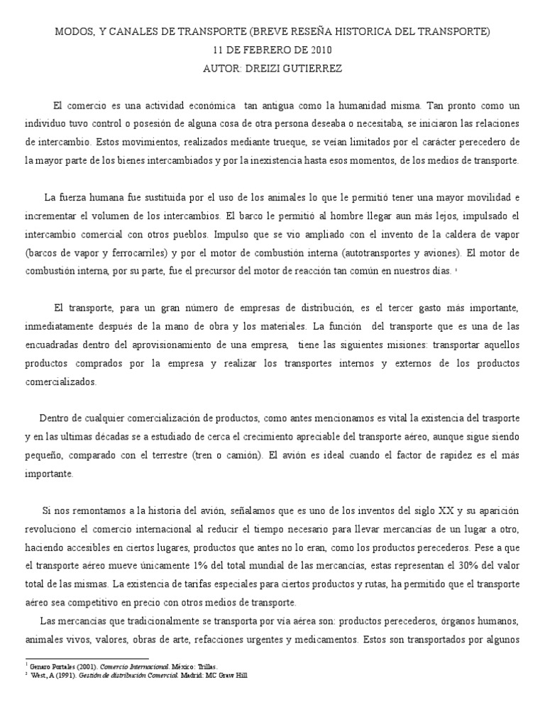 MODOS, Y CANALES DE TRANSPORTE (BREVE RESEÑA HISTORICA DEL TRANSPORTE)