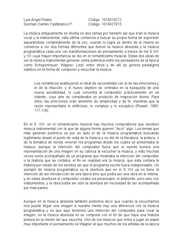 y XX cuya mayor importancia se dio en el romanticismo musical. Estas dos ideas de
