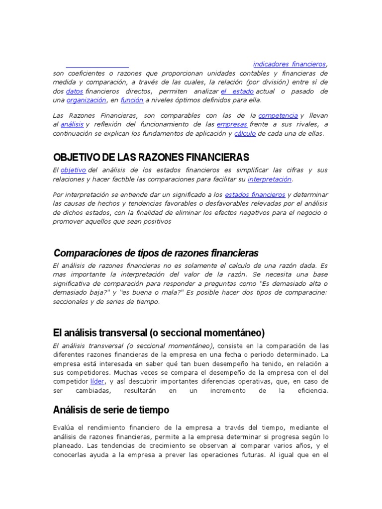 Las Razones financieras tambin llamados ratios financieras o indicadores financieros,