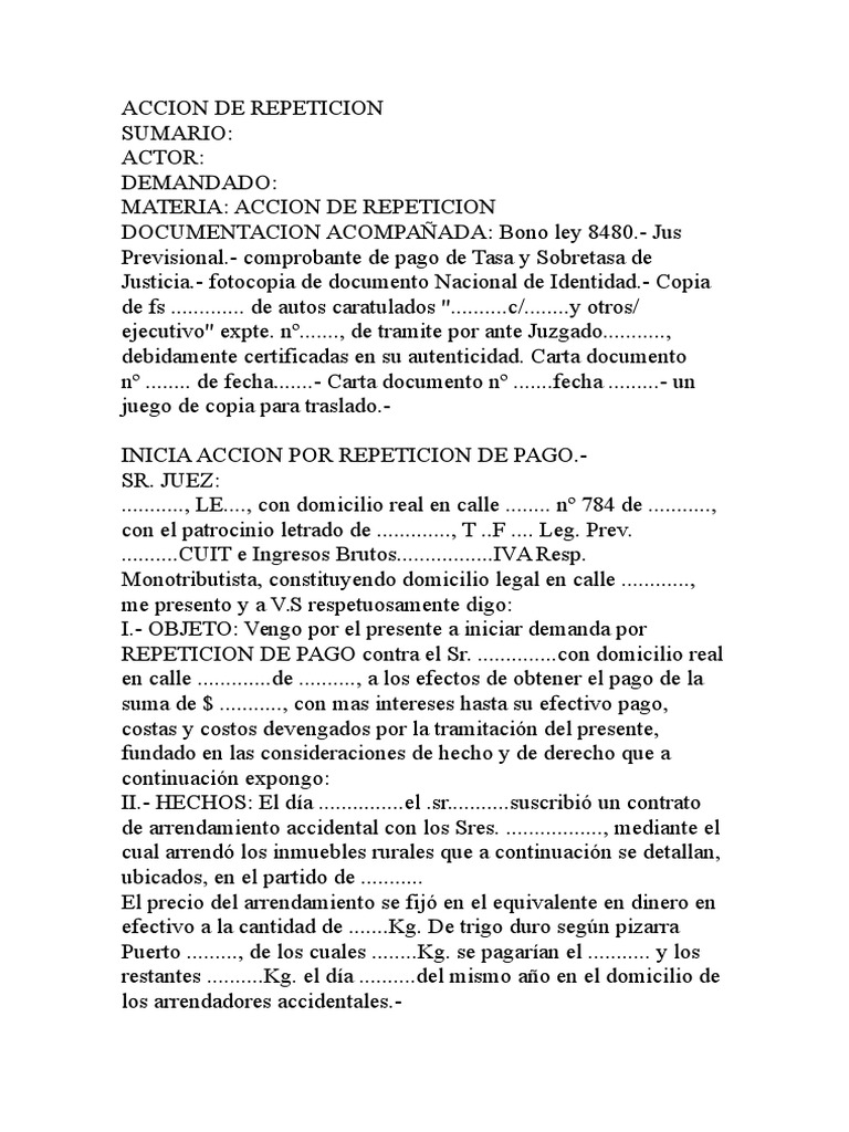 juego de copia para [Link] ACCION POR REPETICION DE [Link]. JUEZ: