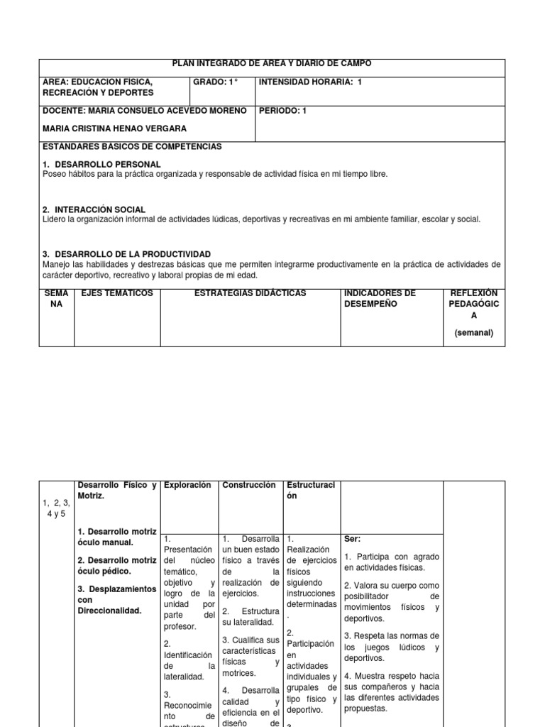 PLAN INTEGRADO DE AREA Y DIARIO DE CAMPO