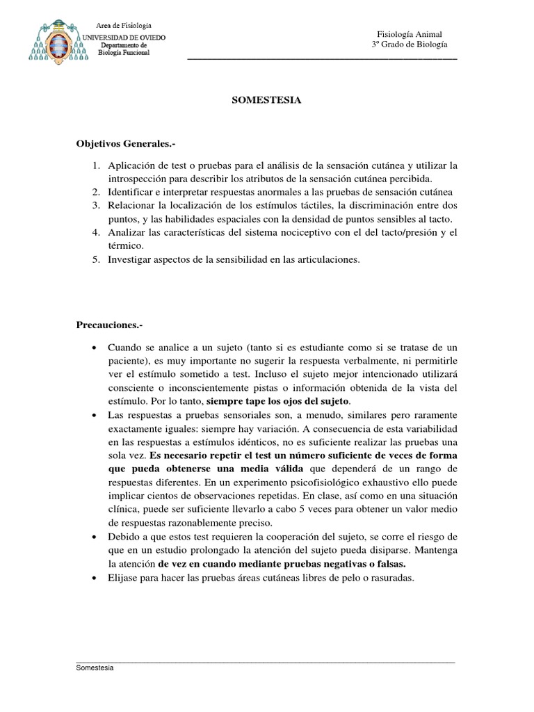Objetivos Generales.1. Aplicacin de test o pruebas para el anlisis de la sensacin cutnea y utilizar la