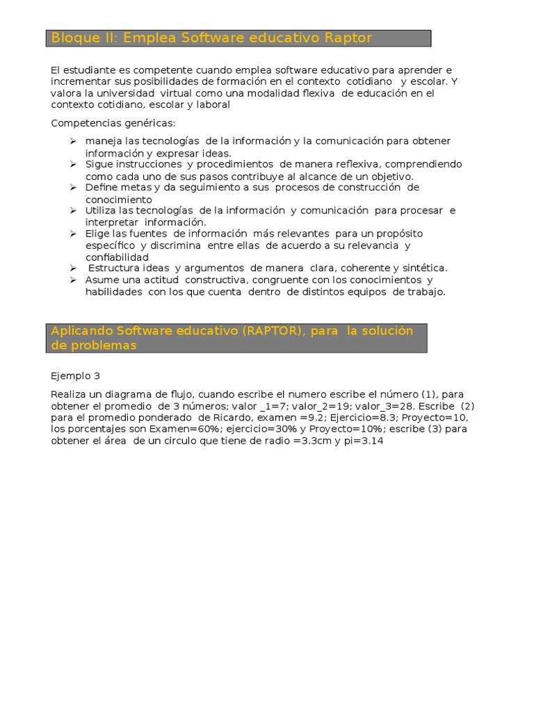 Bloque II: Emplea Software educativo Raptor
