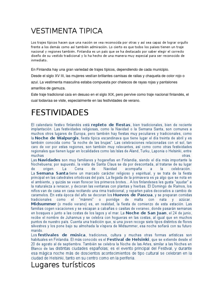 En Finlandia hay una gran variedad de trajes tpicos, dependiendo de cada municipio.