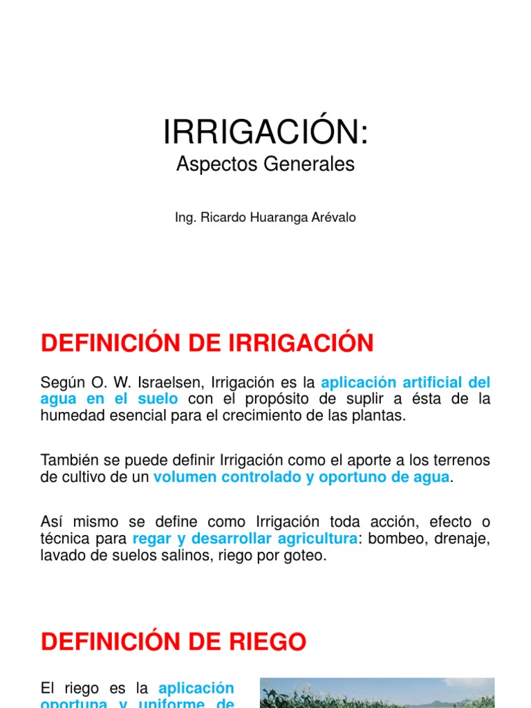Tambin se puede definir Irrigacin como el aporte a los terrenos