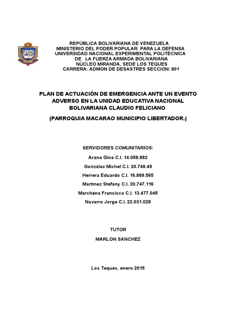 PLAN DE ACTUACIN DE EMERGENCIA ANTE UN EVENTO