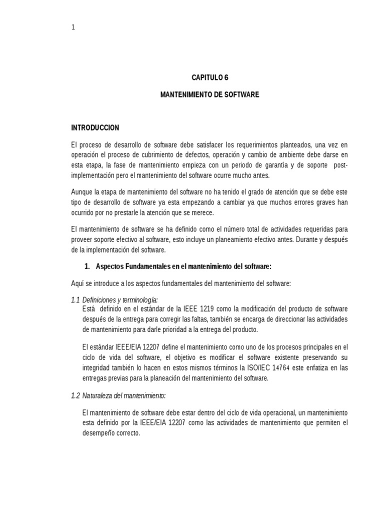 1. Aspectos Fundamentales en el mantenimiento del software: