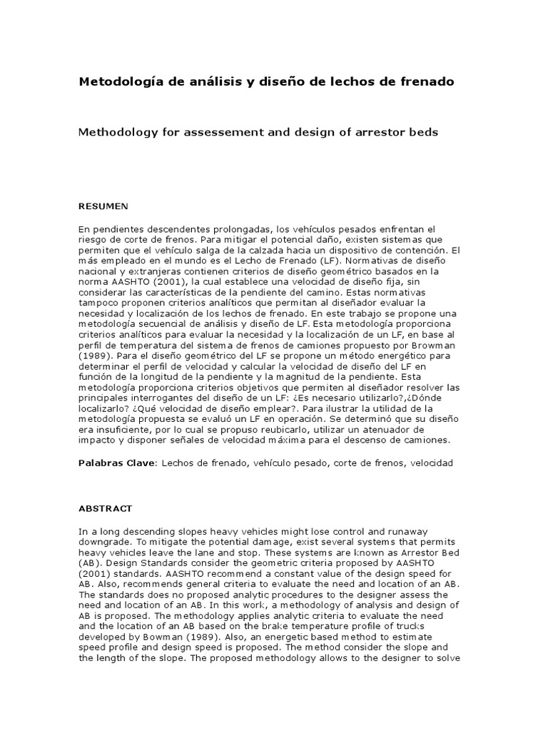 Metodologa de anlisis y diseo de lechos de frenado