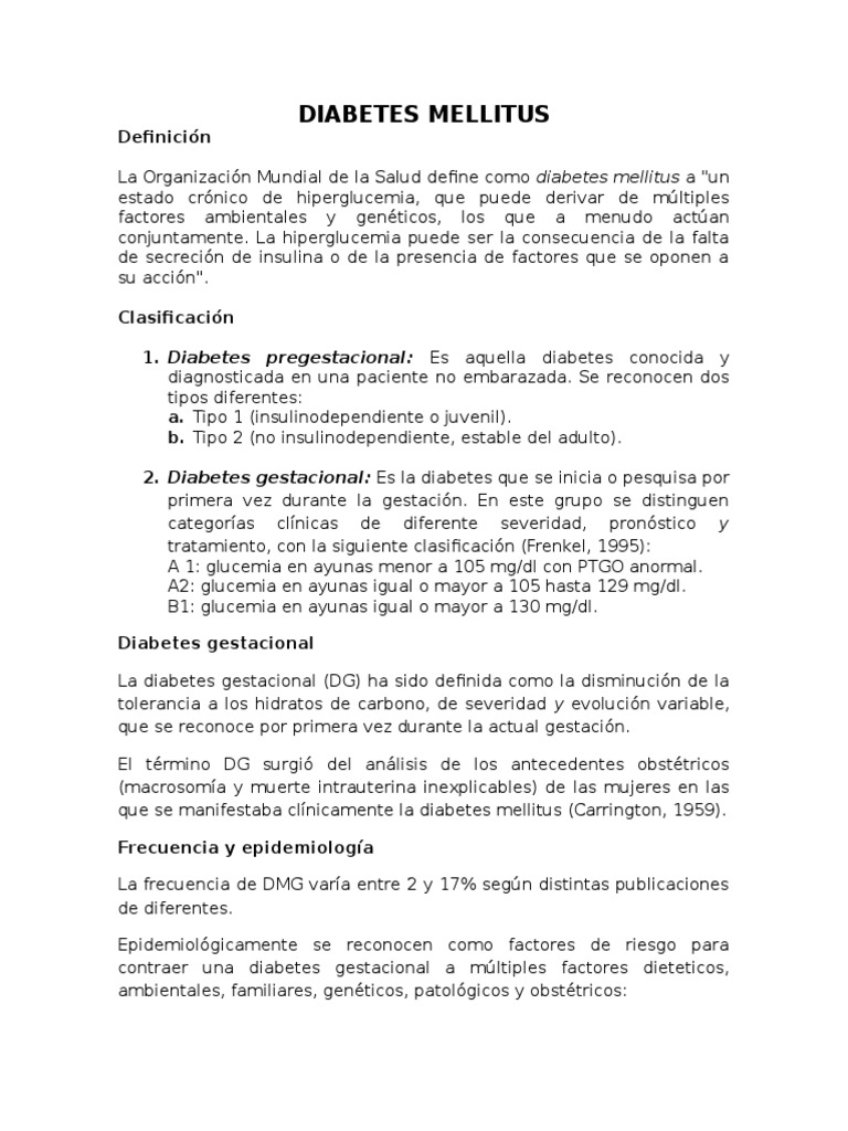 La Organizacin Mundial de la Salud define como diabetes mellitus a "un