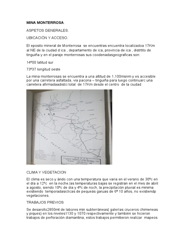 La mina monterrosas se encuentra a una altitud de 1,100msnm y es accesible