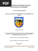 y muestreos con lo cual se procedi a la bicion del mineral y la reservas