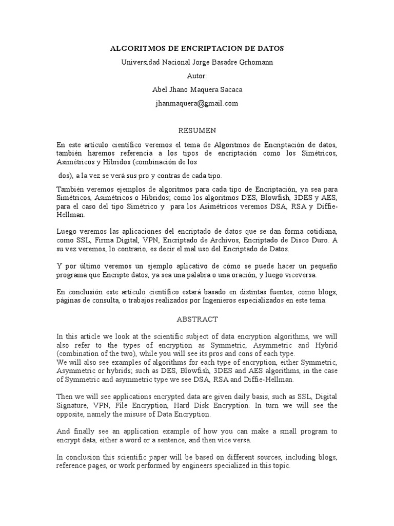 En este artculo cientfico veremos el tema de Algoritmos de Encriptacin de datos,