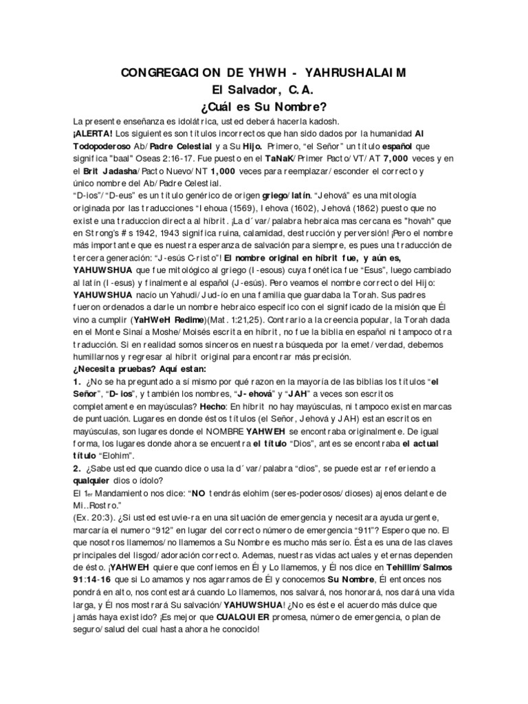 YAHWEH); y YAHUWSHUA ha Mashiach/el Mesas/el Ungido en lugar de Jess Cristo! La