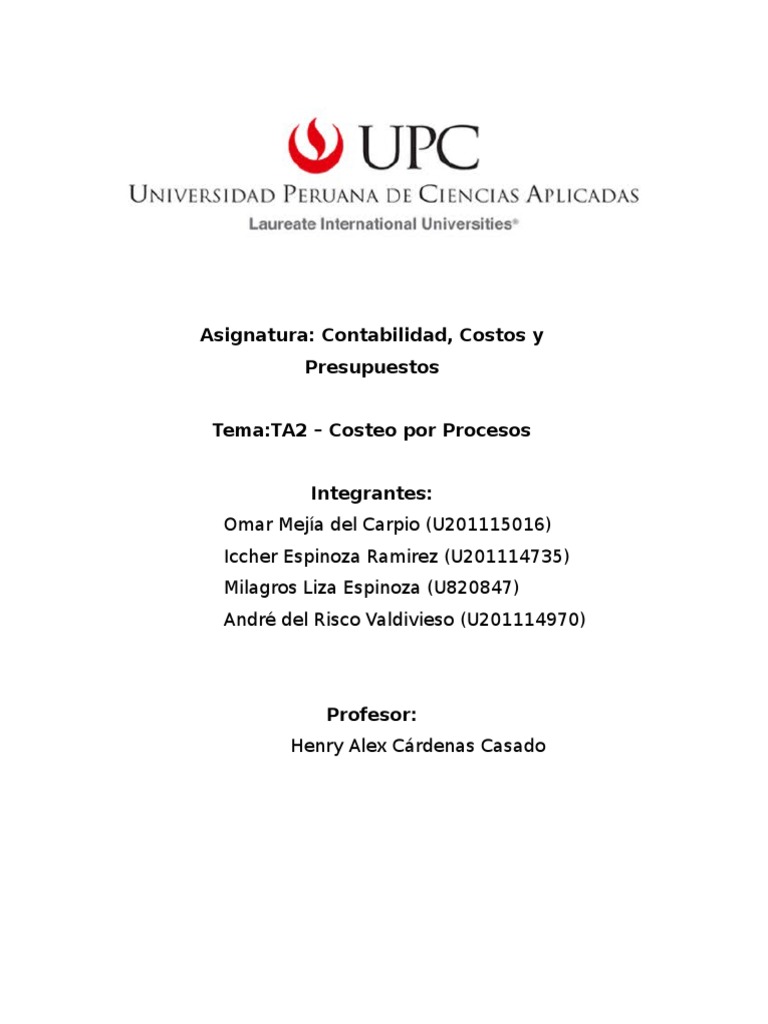 El presente documento analiza el costeo por procesos incurridos para la fabricacin