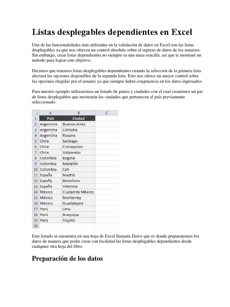 comprobar por ti mismo la creacin de listas desplegables dependientes en Excel. Practica la