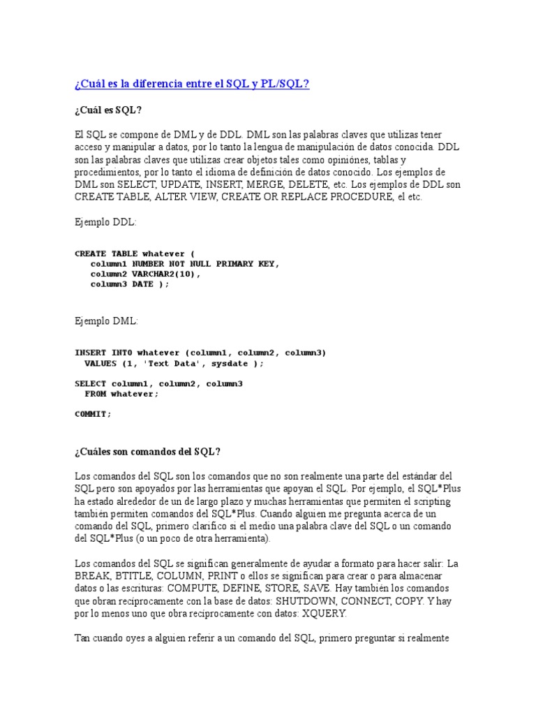 Y ahora la respuesta a la pregunta principal: cul es la diferencia entre el SQL y PL/SQL?