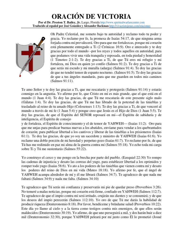 Traducido al espaol por Jos Gonzlez y Alexander Backman http://vivacristojesus.com/oraciones