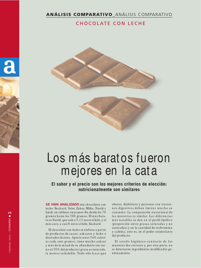 menos: Suchard (5,7 puntos, el peor), Zahor y Valor. La mejor relacin calidad-precio es Nestl.